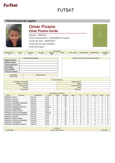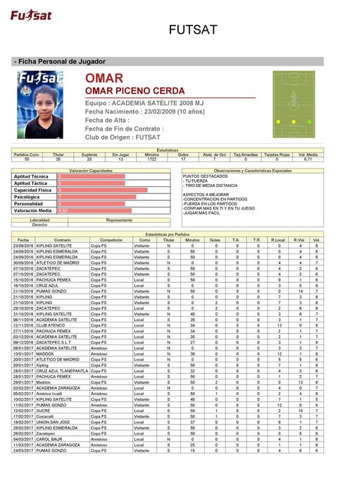 Al final de cada temporada a los futbolistas se les entrega una ficha técnica donde puede ver cuantos minutos jugó, su asistencia a entrenamientos y algunas observaciones de su Formador.