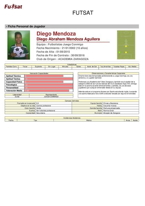 Al final de cada temporada a los futbolistas se les entrega una ficha técnica donde puede ver cuantos minutos jugó, su asistencia a entrenamientos y algunas observaciones de su Formador.