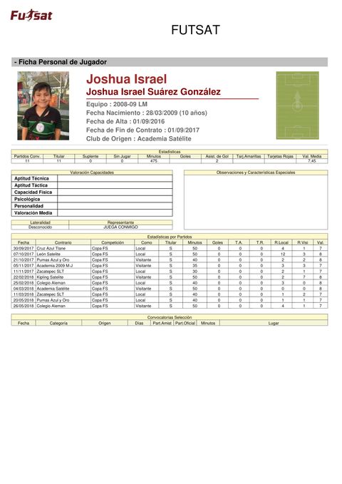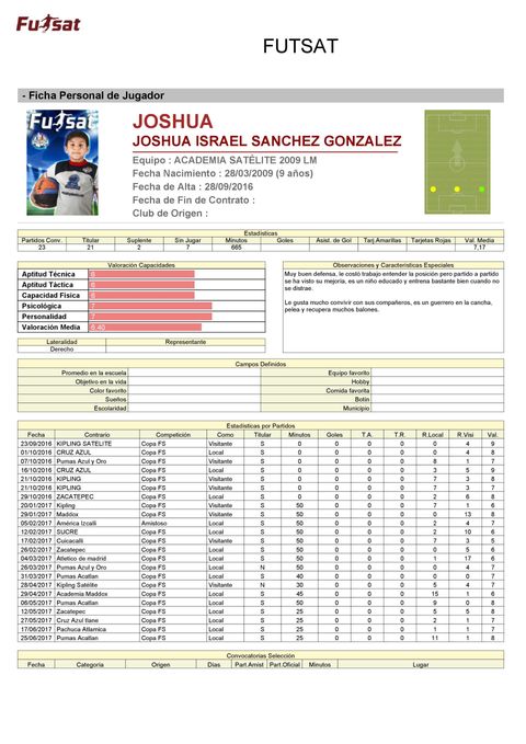 Al final de cada temporada a los futbolistas se les entrega una ficha técnica donde puede ver cuantos minutos jugó, su asistencia a entrenamientos y algunas observaciones de su Formador.