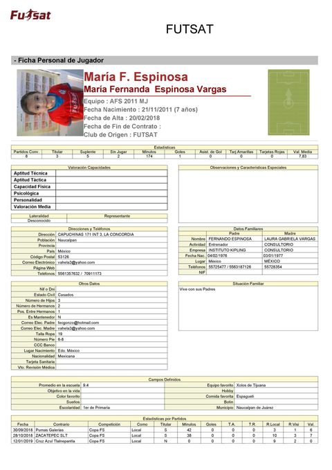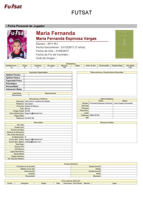 Al final de cada temporada a los futbolistas se les entrega una ficha técnica donde puede ver cuantos minutos jugó, su asistencia a entrenamientos y algunas observaciones de su Formador.