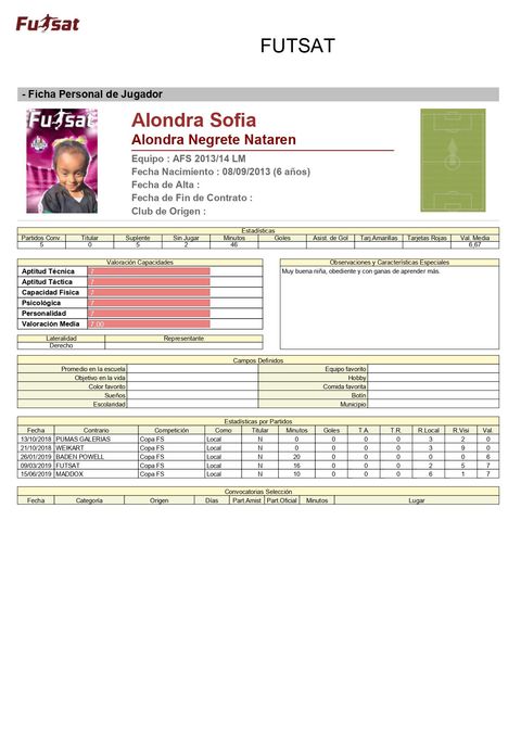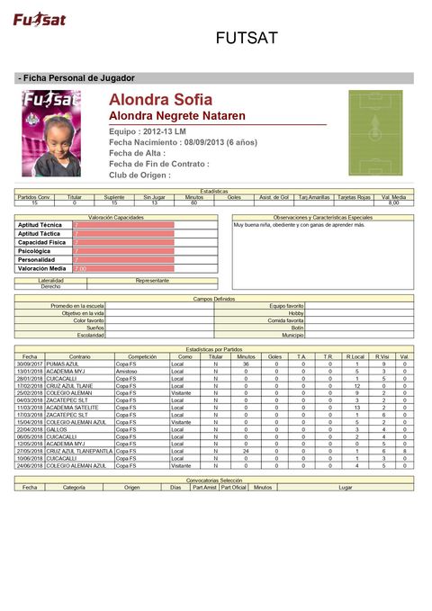 Al final de cada temporada a los futbolistas se les entrega una ficha técnica donde puede ver cuantos minutos jugó, su asistencia a entrenamientos y algunas observaciones de su Formador.